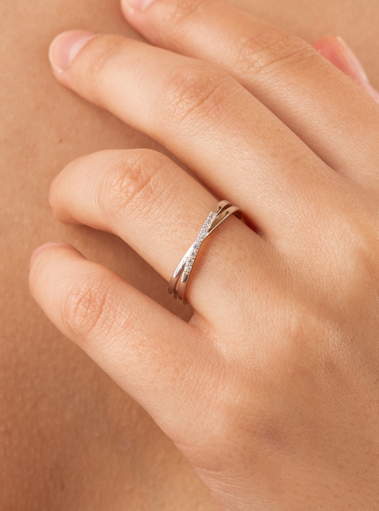 Anillo fino con circonitas doble de plata