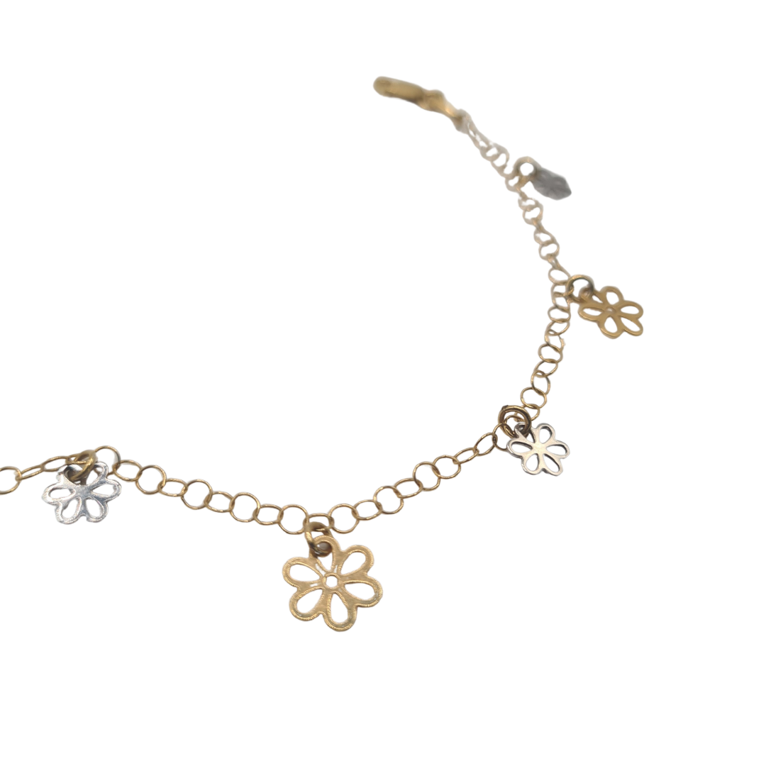 Pulsera18 quilates oro bicolor flores 18cm
